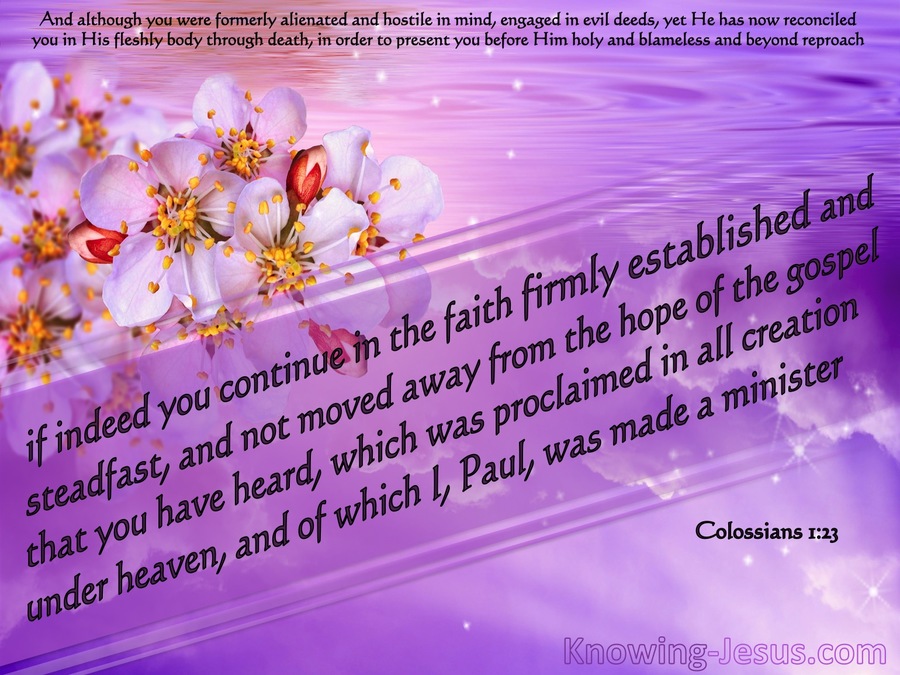 歌罗西书1:23,“只要你们在所信的道上恒心,根基稳固,坚定不移,不至被引动失去(注:原文作“离开”)福音的盼望,这福音就是你们所听过的,也是传与普天下万人听的。”