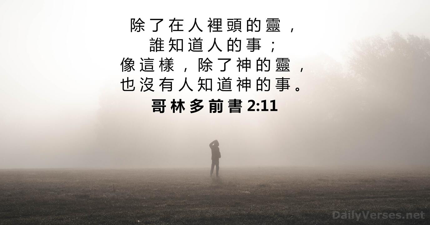 11除了在人里头的灵,谁知道人的事?像这样,除了神的灵,也没有人知道神的事。12我们所领受的,并不是世上的灵,乃是从神来的灵,叫我们能知道神开恩赐给我们的事。13并且我们讲说这些事,不是用人智慧所指教的言语,乃是用圣灵所指教的言语,将属灵的话解释属灵的事。