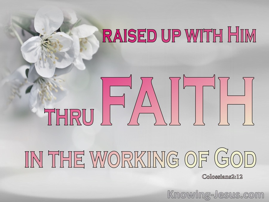 这节经文的下半节(都因信那叫祂从死里复活神的功用),强调了信心的关键作用。受洗者因为信神叫基督从死里复活的大能(的运行),就因着这样的信,借着洗礼,与基督一同埋葬,一同复活。