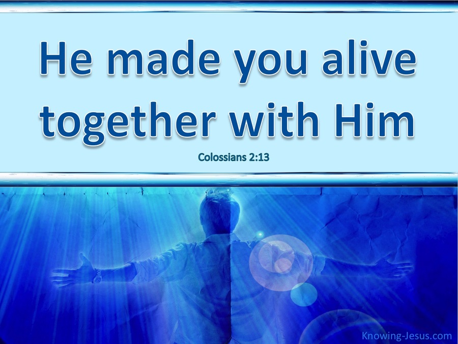 13你们从前在过犯,和未受割礼的肉体中死了,神赦免了你们一切过犯,便叫你们与基督一同活过来。
