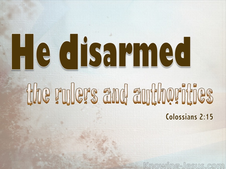 这节经文以开头的分词“掳来”,描述了神的另一个作为。“掳来”是指得胜者解除失败者的武装。对象是“执政的”和“掌权的”,即那些对抗神的灵界权势。神把这些“掳来”的,公开示众,宣告祂借着那钉十字架的基督而有胜利。
