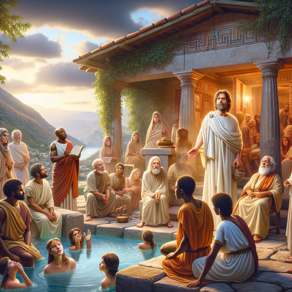 保罗西拉来到帖撒罗尼迦带领许多虔敬的希腊人信主,因为不信的犹太人逼迫,保罗和西拉来到庇哩亚。从帖撒罗尼迦追过来的犹太人再次逼迫保罗,保罗随即被人带到雅典。保罗在雅典与伊壁鸠鲁和斯多亚门派的学士辩论,向雅典人讲述神是创造的主,是供应的主,是生命的主,是掌权的主,也是审判的主。众人听了保罗的讲道,有人讥诮,有人推脱,有人归信。保罗在雅典短暂停留,然后他继续西行到了哥林多。