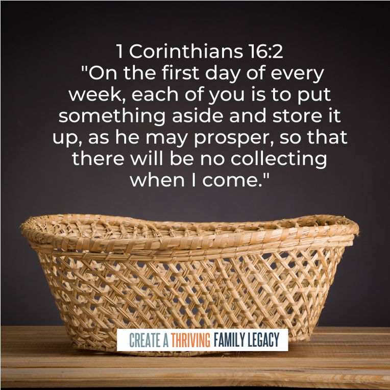 哥林多前书16:2 每逢七日的第一日,各人要照自己的进项抽出来留着,免得我来的时候现凑。