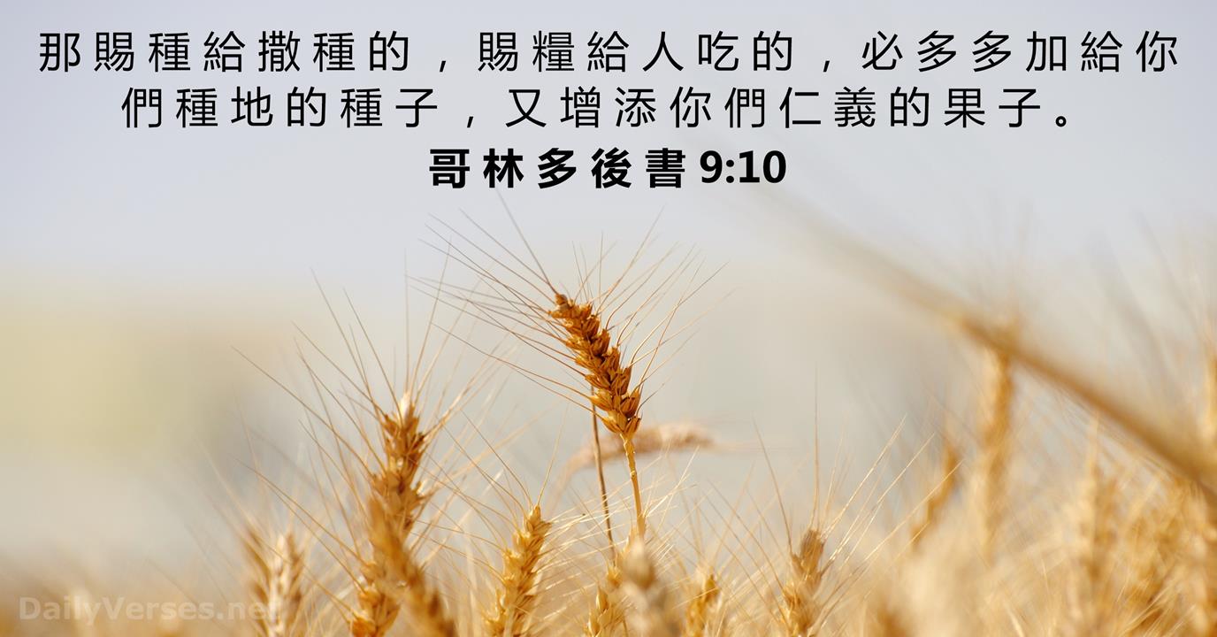 10那赐种给撒种的,赐粮给人吃的,必多多加给你们种地的种子,又增添你们仁义的果子,11叫你们凡事富足,可以多多施舍,就借着我们使感谢归于神。