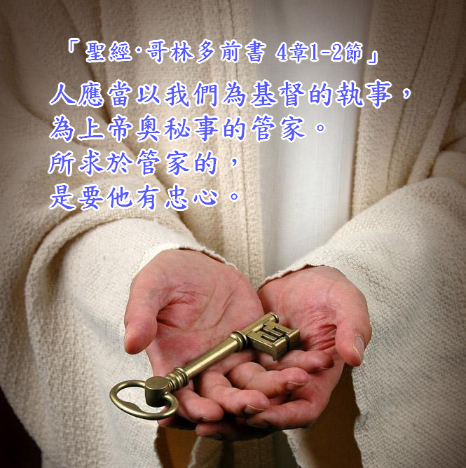 1人应当以我们为基督的执事(servant),为神奥秘事的管家。2所求于管家的,是要他有忠心。