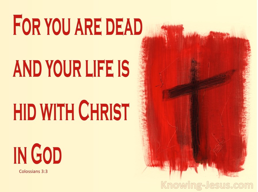 为什么“当追求上面的事”,“要思念上面的事,不要思念地上的事”?——“因为你们已经死了”。这是指我们的旧人已经与基督同钉十字架这样一个灵性的事实,即2:20“你们与基督同死”的这个事实。圣灵借着十字架,在基督的“死”里治死了我们的旧生命;圣灵也把一个全新的生命赏赐给我们。这个“生命”是一个“与基督一同藏在神里面”的生命。