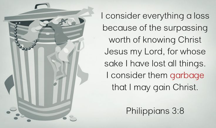 2. 使徒保罗:只是我先前以为与我有益的,我现在因基督都当作有损的。不但如此,我也将万事当作有损的,因我以认识我主基督耶稣为至宝。我为祂已经丢弃万事,看作粪土,为要得着基督。(腓立比书3:7–8)