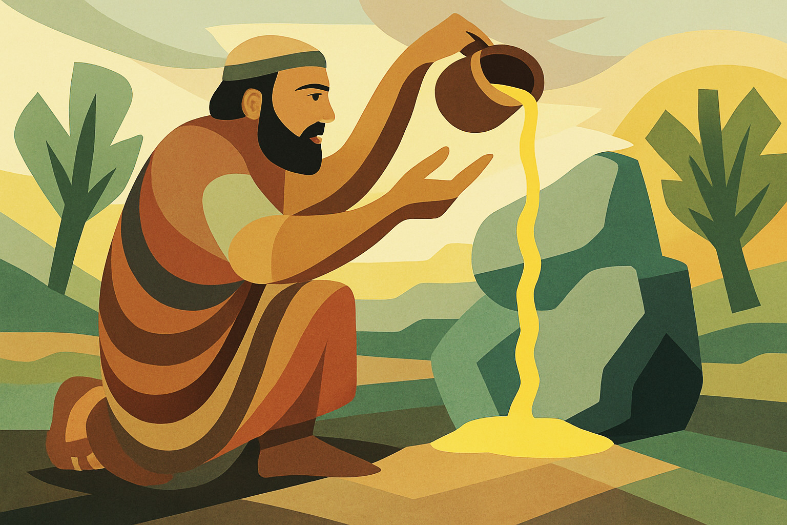 为了纪念这次特殊经历,雅各立了一根柱子并在上面浇油,将其分别为圣。但是请大家特别注意:雅各没有筑坛,而且他浇油在柱子上。迦南人在敬拜神明的时候,常常会立一根柱子,但申命记16 章 22 节禁止这种做法。所以多年以后,雅各在毗努伊勒生命更新的时候,他就回到伯特利去筑坛了。