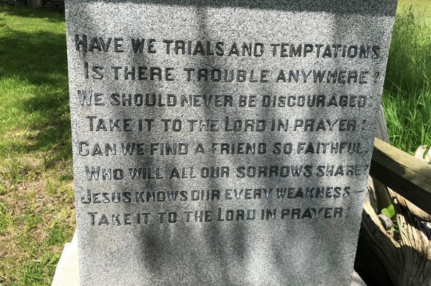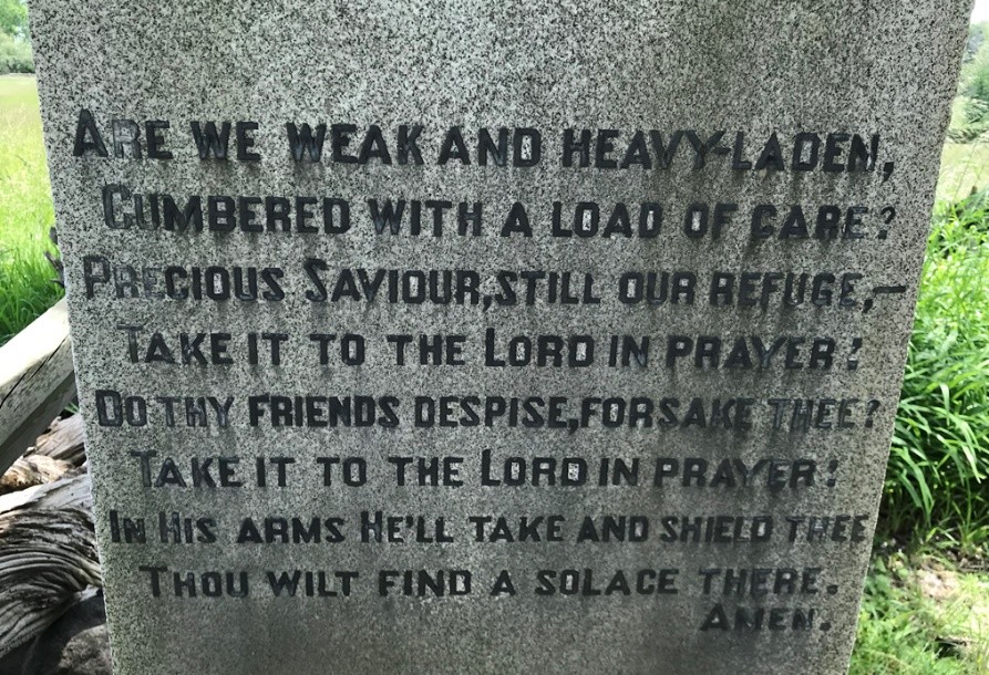 几年前在教会领诗,查找到歌词的作者约瑟.斯克芮文(Joseph M. Scriven)就长眠于安大略省南部的霍普港(Port Hope)北面的莱斯湖畔(Lake Rice),并为他的人生经历深深感动。此后虽在401高速多次往返途经此地,但一直未能前去凭吊。这次来伦敦途中,随着车轮碾压路面的沙沙声,这一愿望又悄然浮上心头。多年的心愿终于有机会得以实现。