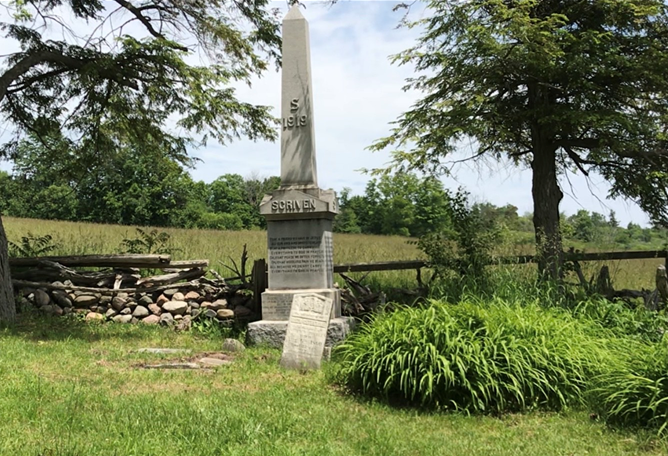 路边矗立着“安大略省考古和历史遗址委员会”的铜质牌匾,简要介绍了约瑟.斯克芮文的生平: