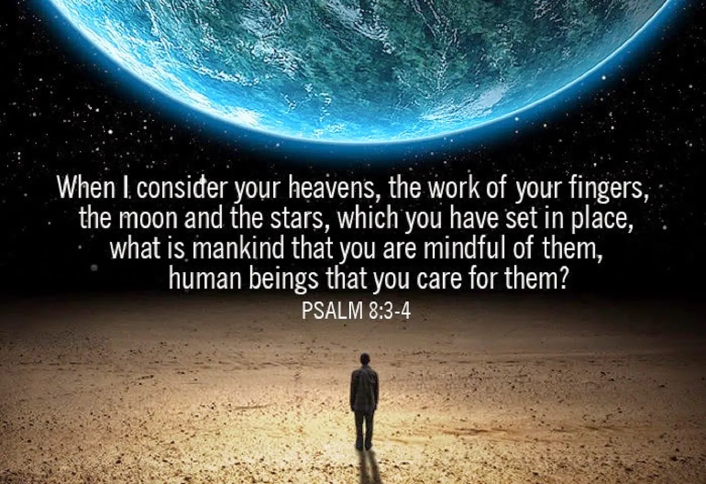 诗人有说:“我观看你指头所造的天,并你所陈设的月亮星宿,便说:人算什么,你竟顾念他?世人算什么,你竟眷顾他?”(诗篇8:3–4)