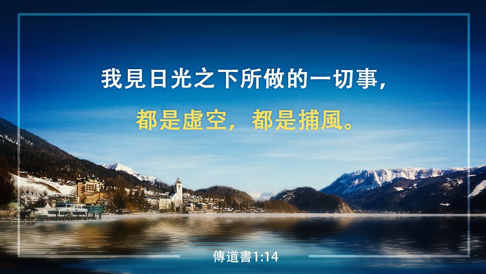 “又说:我见日光之下所作的一切事,都是虚空,都是捕风。”(1:14)