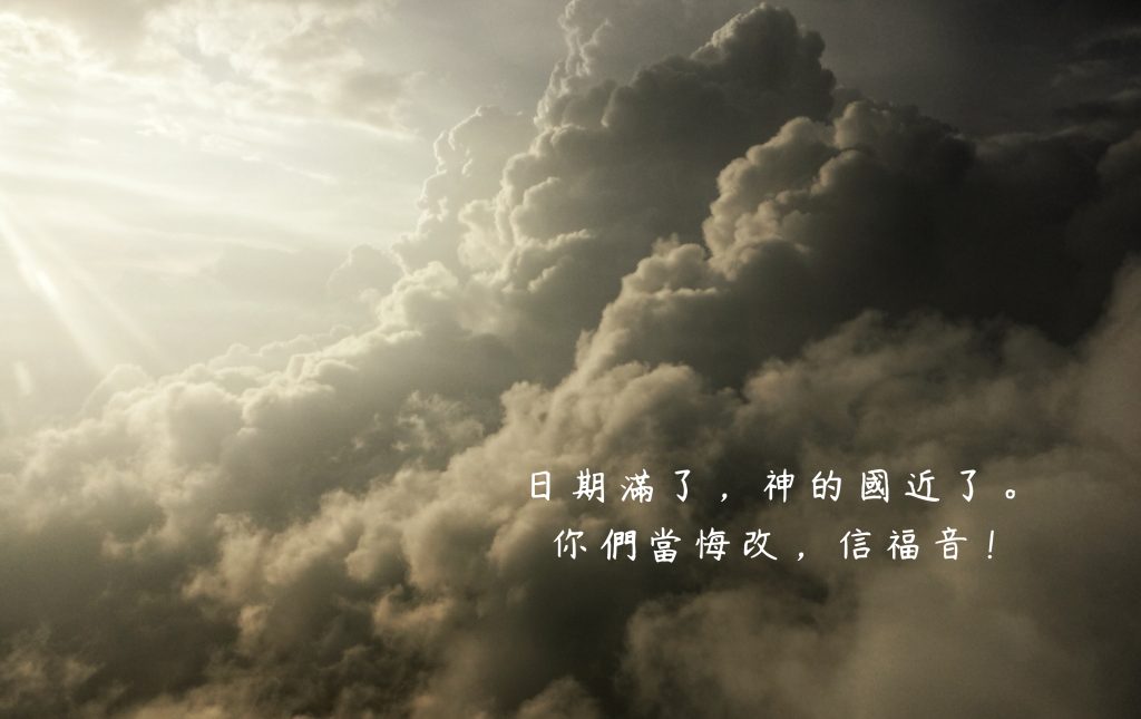 约翰下监以后,耶稣来到加利利,宣传神的福音,说,“日期满了,神的国近了;你们当悔改,信福音。”(可一14-15)