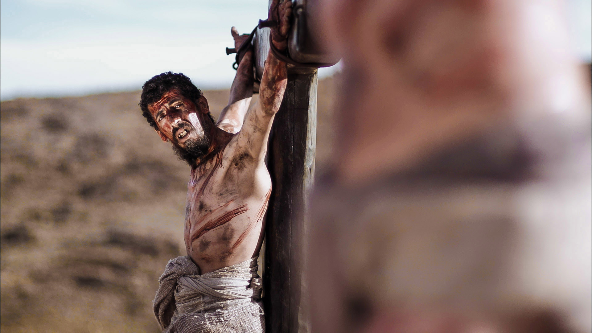 在百般折磨完毕之后,罗马兵丁强迫耶稣拖着虚弱的身体背着自己的十字架艰难走向各各他山,中途因体力不支,他们强迫古利奈人西门背着祂的十字架。然后耶稣被钉在十字架上,手和脚被坚硬的铁钉刺穿。铁钉的长度必须能够穿透两只脚踝并钉入十字架的木头,铁钉的厚度必须使之能够承受身体的重量。当十字架竖起时,毫无怜悯的罗马兵丁将十字架猛然插进土坑里,那种剧烈的震荡足以将身体撕裂。