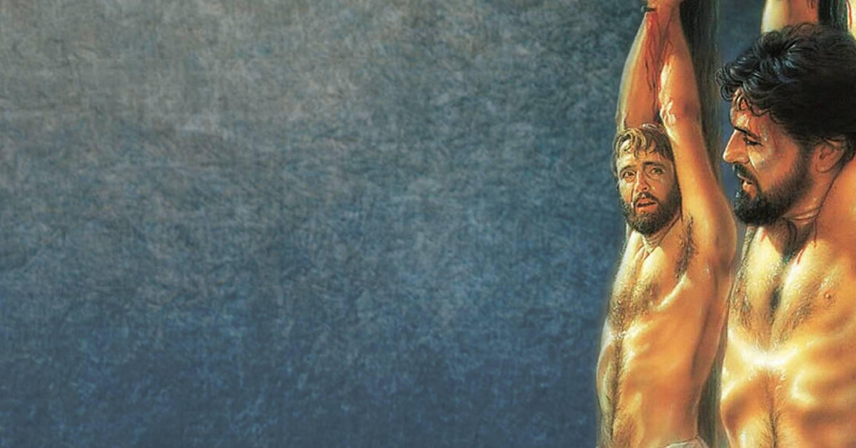 “当时,有两个强盗,和他同钉十字架,一个在右边,一个在左边。从那里经过的人,讥诮他,摇着头说,你这拆毁圣殿,三日又建造起来的,可以救自己吧。你如果是神的儿子,就从十字架上下来吧。祭司长和文士并长老,也是这样戏弄祂,说,祂救了别人,不能救自己。祂是以色列的王,现在可以从十字架上下来,我们就信祂。祂倚靠神,神若喜悦祂,现在可以救祂。因为祂曾说,我是神的儿子。那和祂同钉的强盗,也是这样的讥诮祂。”(马太福音27:38–44)