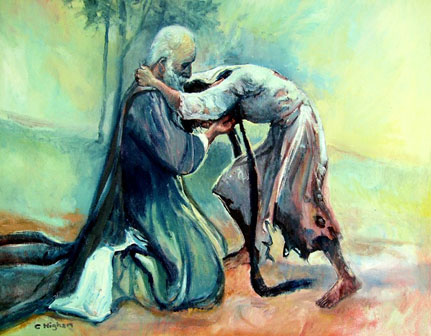 父亲:孩子,感谢主!我们在天上的父神啊,感谢你带领这个孩子回家!求你赦免他一切的罪,涂抹他一切的过犯!求你带领他前面的道路,使他的生命荣耀你的名!感谢你的恩典和怜悯,拣选救拔我和我家这一代又一代的人!主啊,愿你的名大得荣耀!祷告奉耶稣的名,阿们!