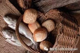 耶稣拿着这五个饼,两条鱼,望着天祝福,掰开,递给门徒,摆在众人面前。他们就吃,并且都吃饱了;把剩下的零碎收拾起来,装满了十二篮子。(路加福音9: 16- 17)