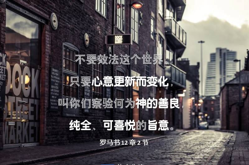 今日经文:“不要效法这个世界。只要心意更新而变化,叫你们察验何为神的善良,纯全可喜悦的旨意。”(罗12:2)