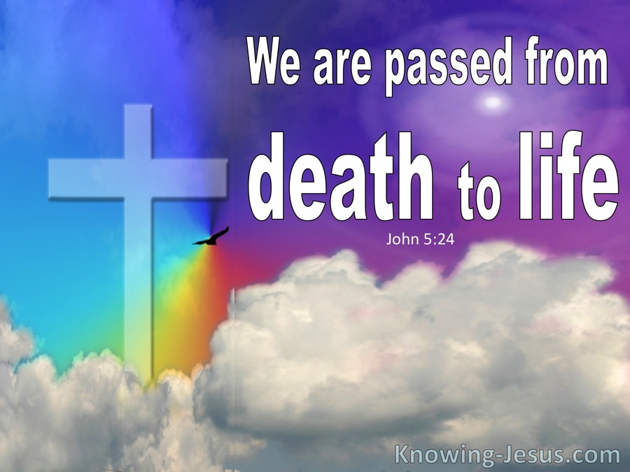 “我实实在在地告诉你们,那听我话,又信差我来者的,就有永生;不至于定罪,是已经出死入生了。”