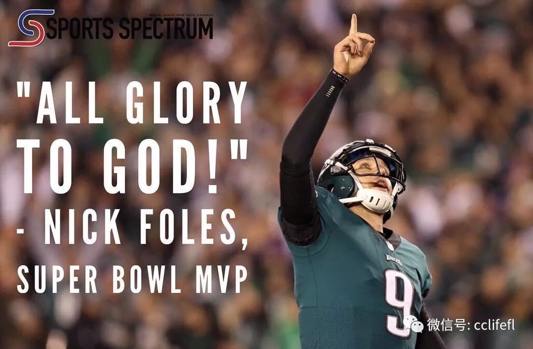 (上图来自网络:Nick Foles夺冠后把荣耀归于上帝。)