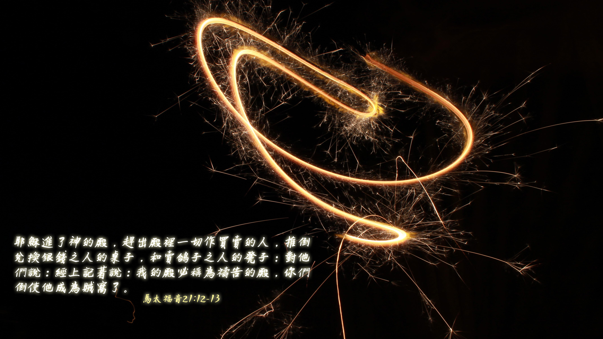 今日经文:耶稣进了神的殿,赶出殿里一切作买卖的人,推倒兑换银钱的人的桌子,和卖鸽子的人的凳子;对他们说,“经上记着说,我的殿必称为祷告的殿,你们倒使它成为贼窝了!”(太二十一12–13)