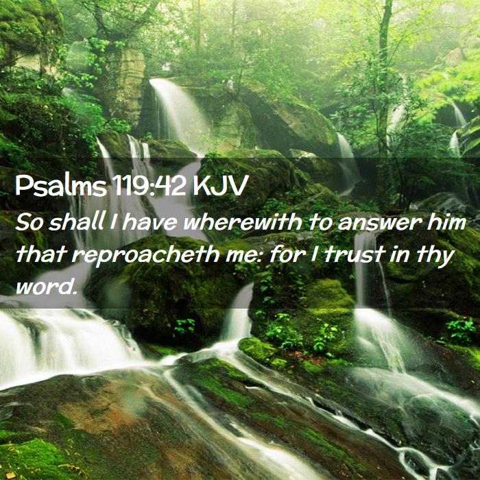 接下来,诗人说,“我就有话回答那羞辱我的;因我倚靠你的话。”诗人的意思是,当他所呼求的耶和华把慈爱和救恩成就在他身上时,他就能够凭着神的应许,靠着神的话,来面对那些羞辱他的人。
