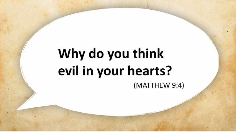 今日经文:“耶稣上了船,渡过海,来到自己的城里。有人用床抬着一个瘫子,到耶稣跟前来。耶稣见他们的信心,就对瘫子说,‘小子,放心吧,你的罪赦了。’有几个文士心里说,‘这个人说僭妄的话了’。耶稣知道他们的心意,就说,‘你们为什么心里怀着恶念呢?’”(太九1–4)