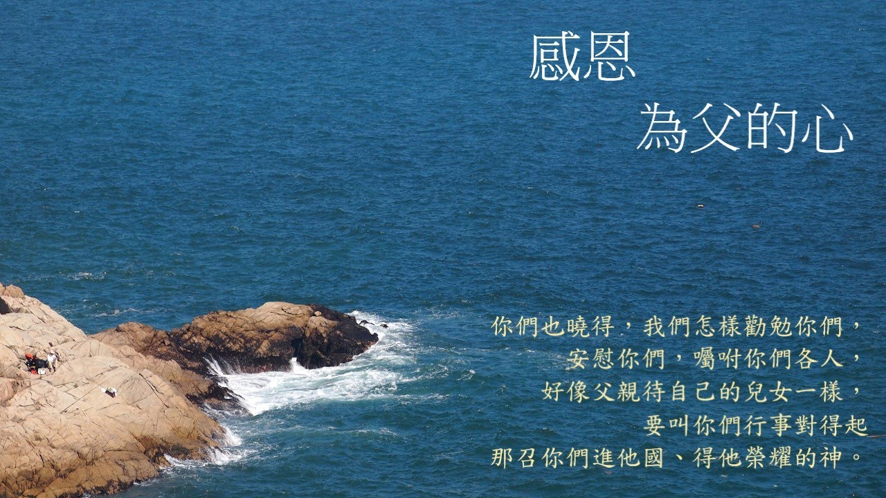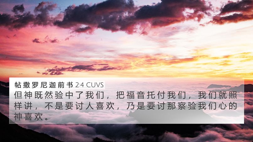 “弟兄们,你们自己原晓得,我们进到你们那里并不是徒然的。我们从前在腓立比被害受辱,这是你们知道的,然而还是靠着我们的神,放开胆量,在大争战中把神的福音传给你们。我们的劝勉不是出于错误,不是出于污秽,也不是用诡诈;但神既然验中了我们,把福音托付我们,我们就照样讲,不是要讨人喜欢,乃是要讨那察验我们心的神喜欢。因为我们从来没有用过谄媚的话,这是你们知道的,也没有藏着贪心,这是神可以作见证的。我们作基督的使徒,虽然可以叫人尊重,却没有向你们或向别人求荣耀;只在你们中间存心温柔,如同母亲乳养自己的孩子。我们既是这样爱你们,不但愿意将神的福言给你们,连自己的性命也愿意给你们,因你们是我们所疼爱的。弟兄们,你们记念我们的辛苦劳碌,昼夜作工,传神的福音给你们,免得叫你们一人受累。我们向你们信主的人是何等圣洁、公义、无可指摘,有你们作见证,也有神作见证。你们也晓得我们怎样劝勉你们,安慰你们,嘱咐你们各人,好像父亲待自己的儿女一样,要叫你们行事对得起那召你们进祂的国得祂的荣耀的神。”(帖前2:1–12)