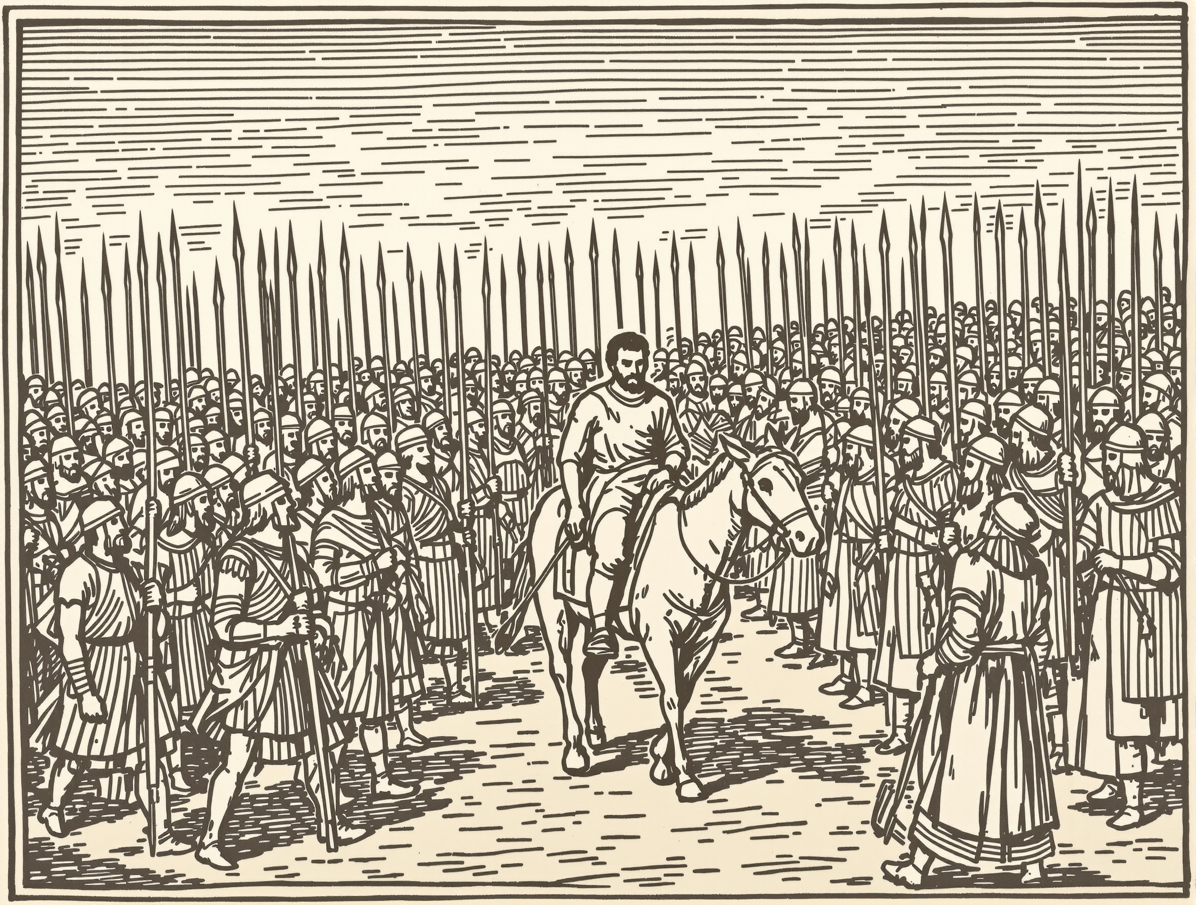 四十多个犹太人起誓要杀保罗,神却为保罗预备了四百七十名武装卫队,保护他脱离危险。我们可以揣想一下保罗离开耶路撒冷的时候那种情形:四百七十名卫队,有步兵,有马兵,还有手持长枪的长枪手,保罗骑着牲口走在中央,那些武装的卫兵在前面和后面拥护着,浩浩荡荡地向着该撒利亚进发。以一个手无寸柄的保罗,如今竟能这样安安全全地从许多仇敌中间走出去,没有受到丝毫的伤害,这不能不承认是神所施行的拯救了。