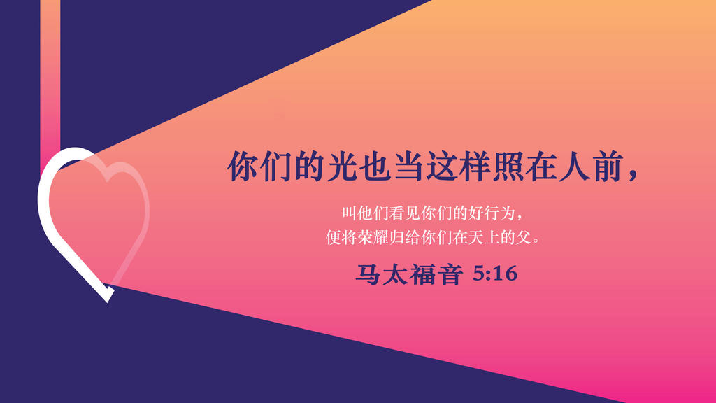 今日经文:“你们是世上的盐。盐若失了味,怎能叫它再咸呢?以后无用,不过丢在外面,被人践踏了。你们是世上的光。城造在山上是不能隐藏的。人点灯不放在斗底下,是放在灯台上,就照亮一家的人。你们的光也当这样照在人前,叫他们看见你们的好行为,便将荣耀归给你们在天上的父。”(太五13–16)