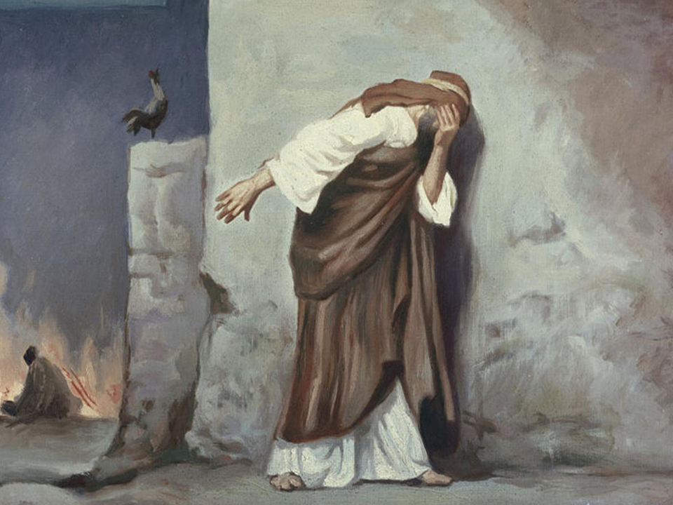 彼得在大祭司的院子里,三次被人认出来他是与耶稣一伙的,他却三次不承认自己的身份,更不承认主。奇妙的是,正在他否认主的时候,主刚好从那里走过,主听见他说:“你这个人,我不晓得说的是什么。”鸡叫了,主转过身来看彼得。