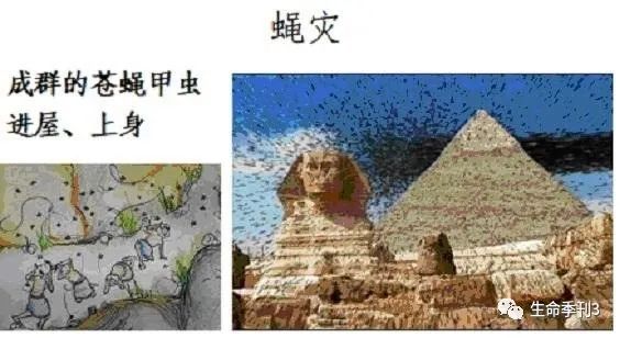 —— 无数飞虫苍蝇听神的命令,只往埃及人那里去,没影响以色列