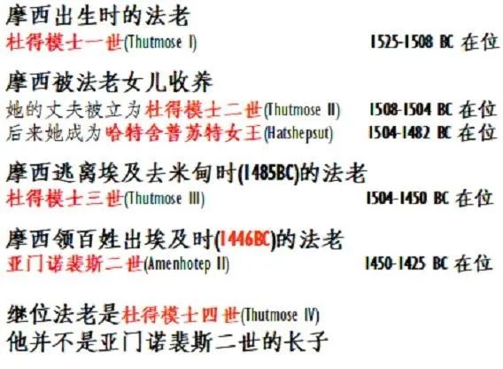 历史考证所罗门王建造圣殿是公元前966年,列王纪上6:1说:“以色列人出埃及地后四百八十年,所罗门作以色列王第四年西弗月,就是二月,开工建造耶和华的殿。”以此推算,以色列人出埃及那年是公元前1446年。按照埃及历史记载,那时的法老是亚门诺裴斯二世,灭命的天使没有杀他,表示法老本身不是长子,但他自己的长子当晚被杀。后来继位的杜得模士四世不是他的长子。怎么知道呢?有考古的证据: