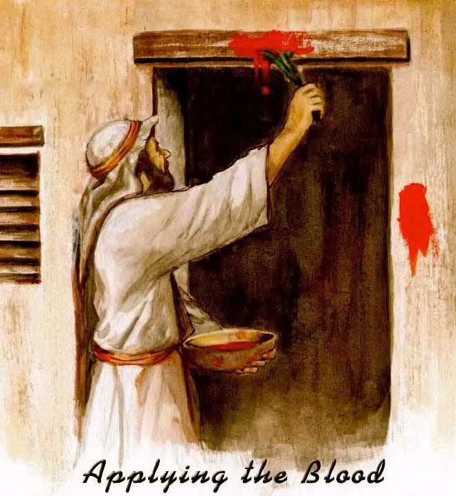 规定中最重要的一项,就是各家按着家族人口杀羊羔,用一把牛膝草沾羊血打在各家的门楣上和左右的门框上。这个打上去羔羊的血就成为一个独特的记号。屋子里面的是在记号之内,就受到神的保护,无论何人或牲畜在逾越节整个晚上都不可以出门,因为离开屋子出去外面,就在记号之外了。