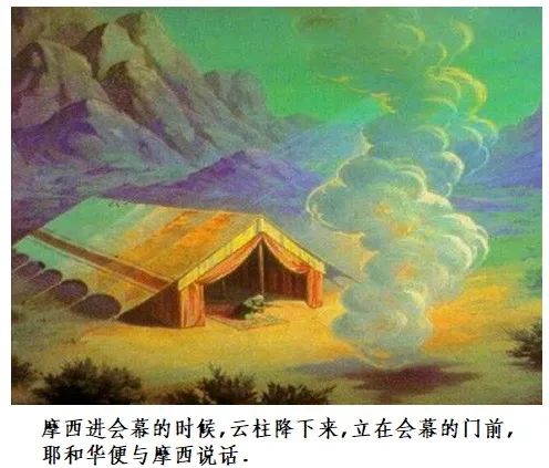 “摩西素常将帐棚支搭在营外,离营却远,他称这帐棚为会幕。凡求问耶和华的,就到营外的会幕那里去。当摩西出营到会幕去的时候,百姓就都起来,各人站在自己帐棚的门口,望着摩西,直等到他进了会幕。摩西进会幕的时候,云柱降下来,立在会幕的门前,耶和华便与摩西说话。众百姓看见云柱立在会幕门前,就都起来,各人在自己帐棚的门口下拜。耶和华与摩西面对面说话,好像人与朋友说话一般。摩西转到营里去,唯有他的帮手,一个少年人嫩的儿子约书亚不离开会幕。”(出33:7–11)