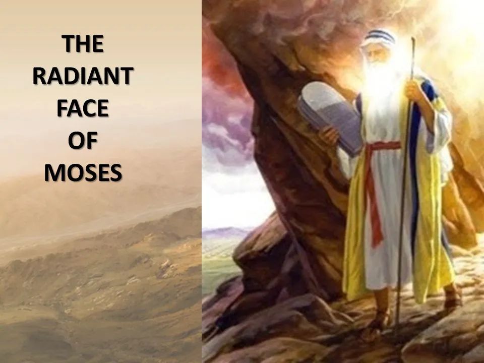 自从摩西请求神让他能看见神的荣耀,神答应在他面前经过,但只让他从磐石洞中看见神的背,接下去的四十昼夜摩西与神在一起重新立约,到他下山时,他的脸皮已经呈现出神的荣光,而他自己并不知道。