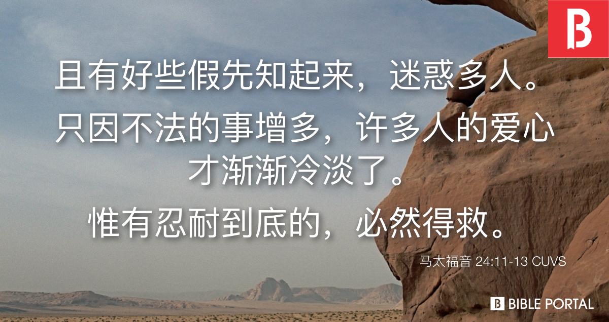 亲爱的主,谢谢你提醒我们在末后这样一个状况,因不法的事增多,许多人的心渐渐冷淡。亲爱的主,如若我们的心也渐渐冷淡,求你用你的大爱,你的大恩典挽回我们,叫我们的爱心因你爱的充满而火热起来,因你圣灵的光照而充满起来。主啊,让我们在这样一个末后的世代,成为你的精兵,为你做见证,愿一切的荣耀归于三一真神,奉主耶稣的名,阿们!